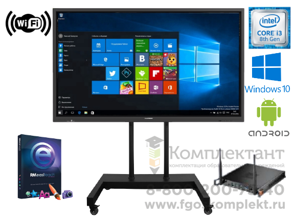 Интерактивная панель с мобильной стойкой Lumien 65", 4K, Android 8.0, OPS ПК Core i3 Windows 10 Pro.