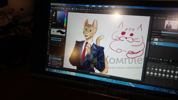 • Имеется функция распознавания силы давления стилуса на активную панель интерактивного кульмана.