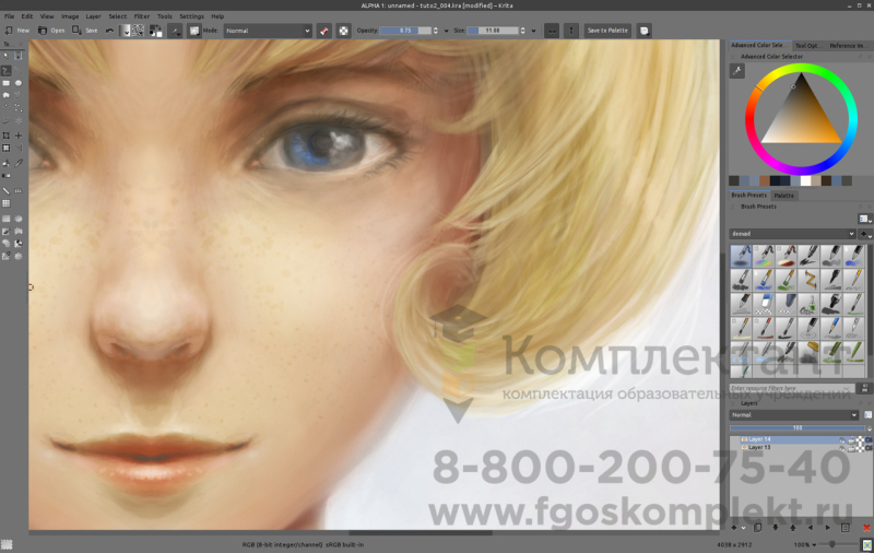 Выбор в сторону этой программы сделали многие профессионалы своего дела. Приложение никак не ограничивает размер виртуального холста, все зависит лишь от производительности машины. Krita имитирует реальные полотна, в ней эмулируются разные инструменты для рисования, а контейнер эффектов включает множество художественных эффектов. Поэтому процесс создания цифровых рисунков максимально соответствует реальному. А еще приложение без проблем работает с послойными заготовками, содержит средства для пост-обработки и обеспечивает высокий уровень детализации.  Интересно, что изначально Krita задумывалась как инструмент для рисования, но сейчас программа обрела множество дополнительных функций для редактирования уже готовых цифровых снимков и ее можно считать «конкурентом» Adobe Photoshop .