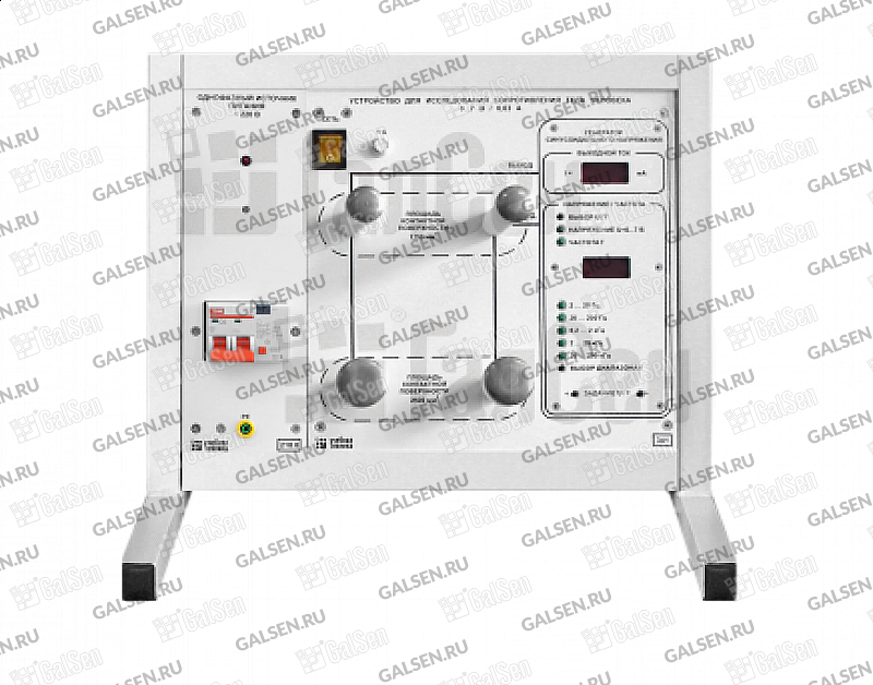 Учебный стенд предназначен для лабораторного практикума по дисциплине "Безопасность жизнедеятельности" (БЖД) для определения электрического сопротивления тела человека методом амперметра и вольтметра при различных значениях приложенного напряжения и его частоты, а также различной площади контактной поверхности. Встроенный генератор синусоидального напряжения позволяет устанавливать частоту и величину прилагаемого к человеку напряжения. Встроенные контактные электроды выполнены в форме выпуклых рукояток с проводящей поверхностью. Встроенные индикаторы отображают частоту, напряжение и ток.