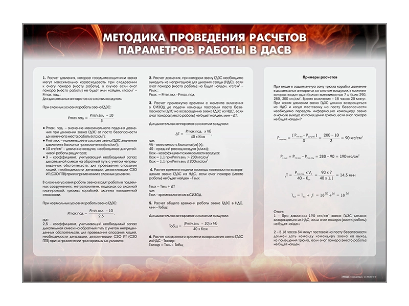 Стенд представляет собой информационную панель, содержащую сведения о методике проведения расчётов параметров работы в ДАСВ.