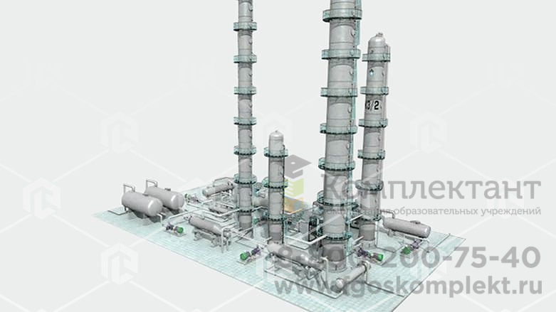 Стационарный интерактивный макет на мобильной платформе позволяет изучать последовательность и логистику технологических процессов газофракционирующей установки с возможностью сенсорного ввода и управления, отображать трехмерные разрезы выбранного элемента оборудования на дисплее макета.