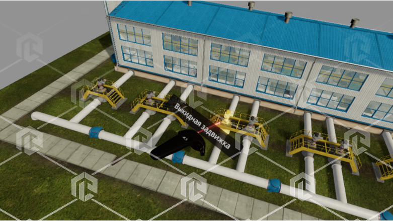 Стационарный интерактивный макет на мобильной платформе позволяет изучать оборудование и принцип работы основного здания НПС с возможностью сенсорного ввода и управления, отображать трехмерные разрезы выбранного элемента оборудования на дисплее макета.