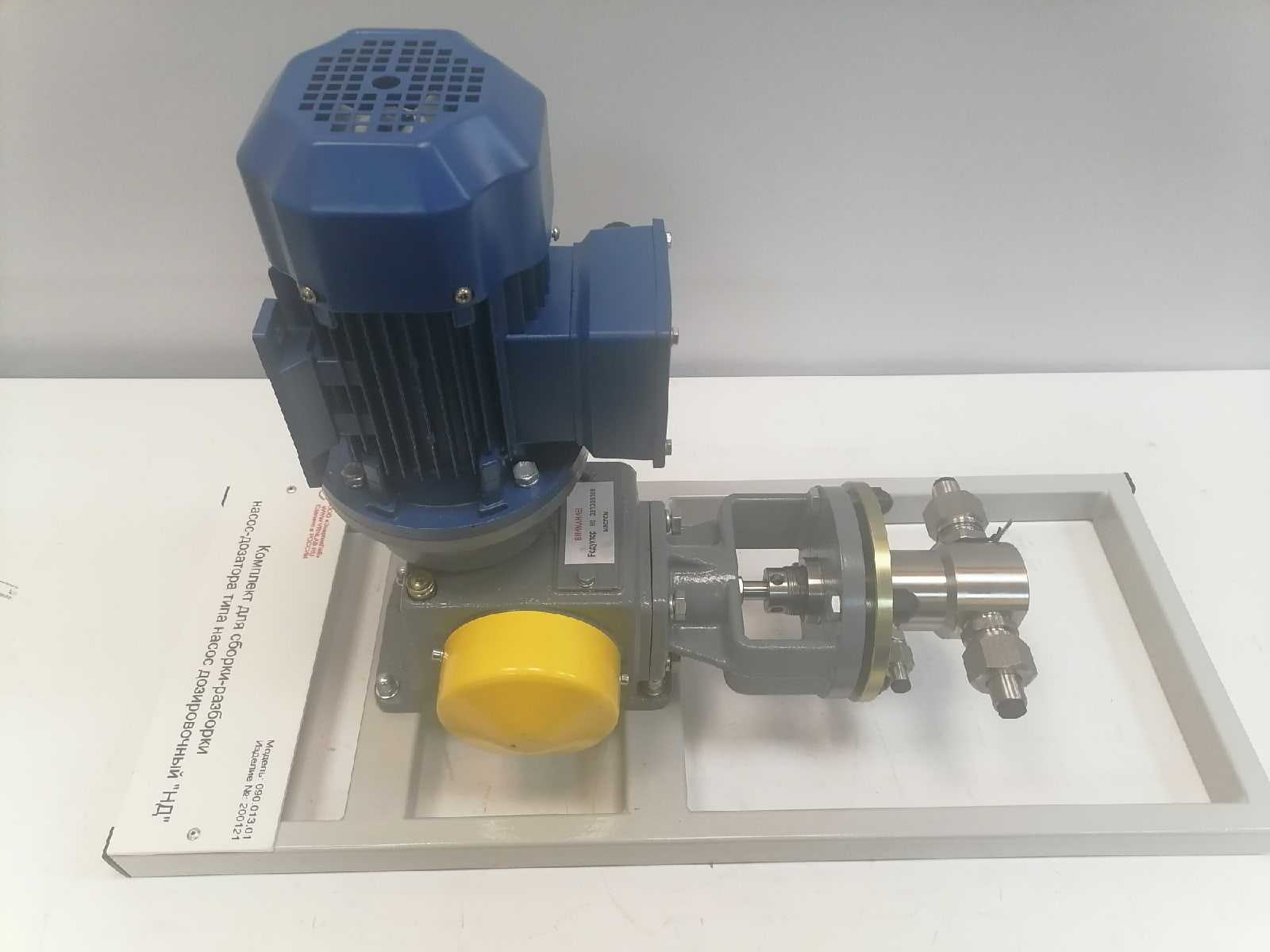 Комплект представляет собой насос-дозатор типа НД 1,0-10/100. В качестве насоса для разборки/сборки используется горизонтальный агрегат НД 1,0-10/100.