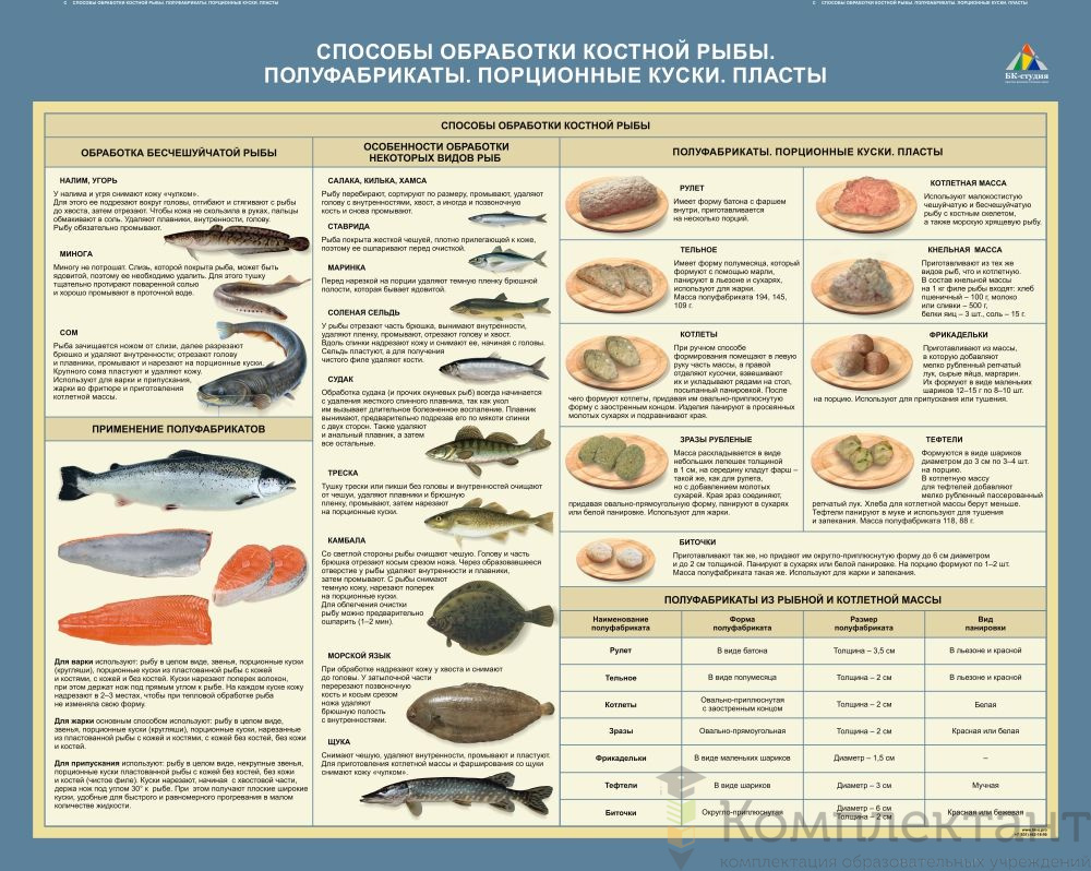 Стенд "Способы обработки костной рыбы. Полуфабрикаты. Порционные куски. Пласты"