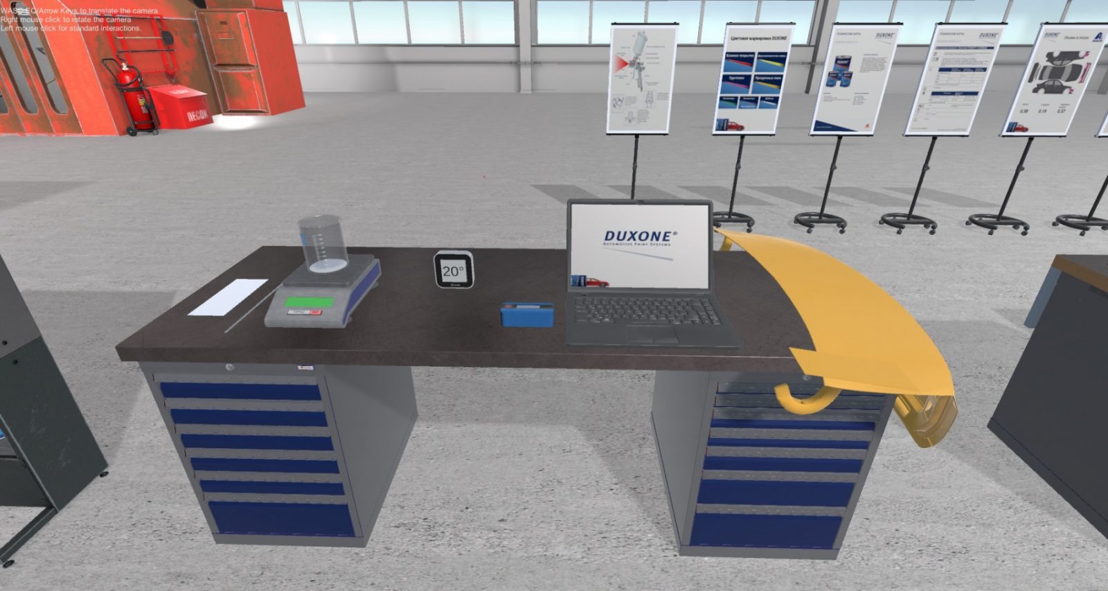 Цель: Обучение специалистов малярно-кузовного участка в условиях учебного класса без необходимости расходования реальных лакокрасочных материалов. Служит целям развития образовательного процесса, дает возможность масштабирования тренинговой базы, безопасной симуляции реальных процессов, экономит расходные материалы и автоматизирует контроль знаний.