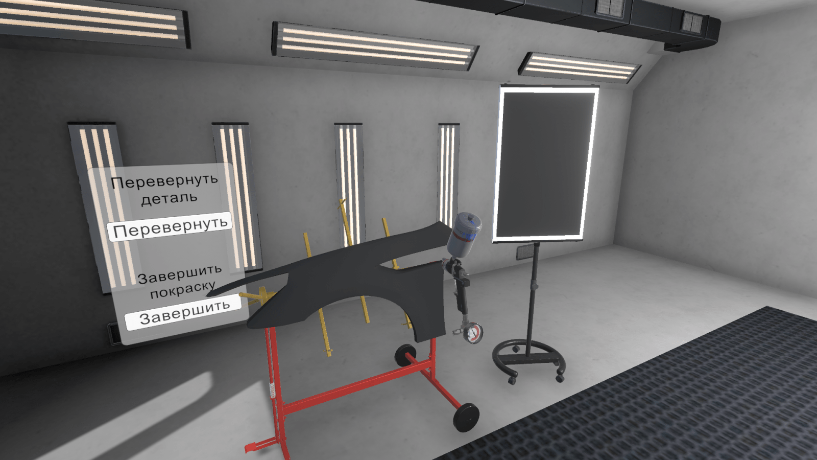 Процесс изучения производства. Виртуальный тренажер позволяет эмулировать сопутствующие этапы технологического процесса покраски: обезжиривание поверхности, сушку окрашенной детали, шлифовку детали.