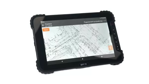 Планшет EFT Т1 представляет собой полноценное защищенное устройство для работы с графическими данными больших объемов, таких как CAD файлы непосредственно в поле.