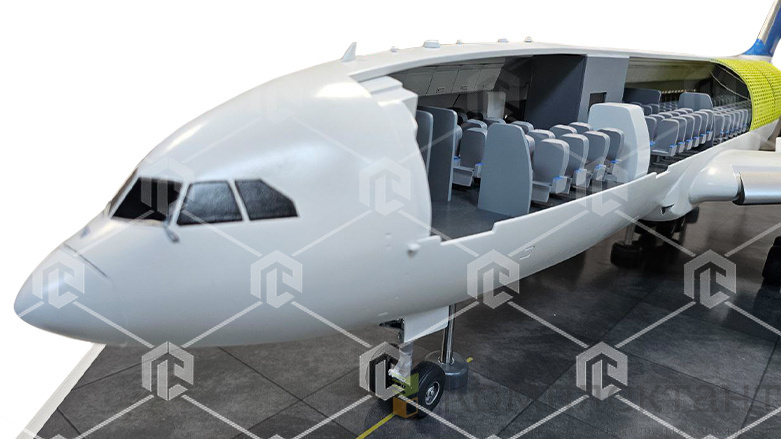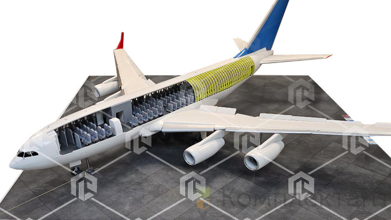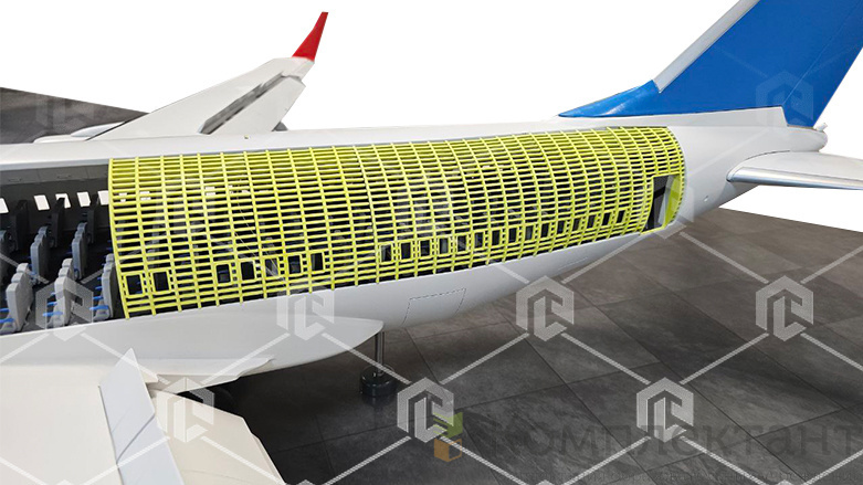 • Макет самолёта с местным разрезом, на котором видны все силовые элементы конструкции