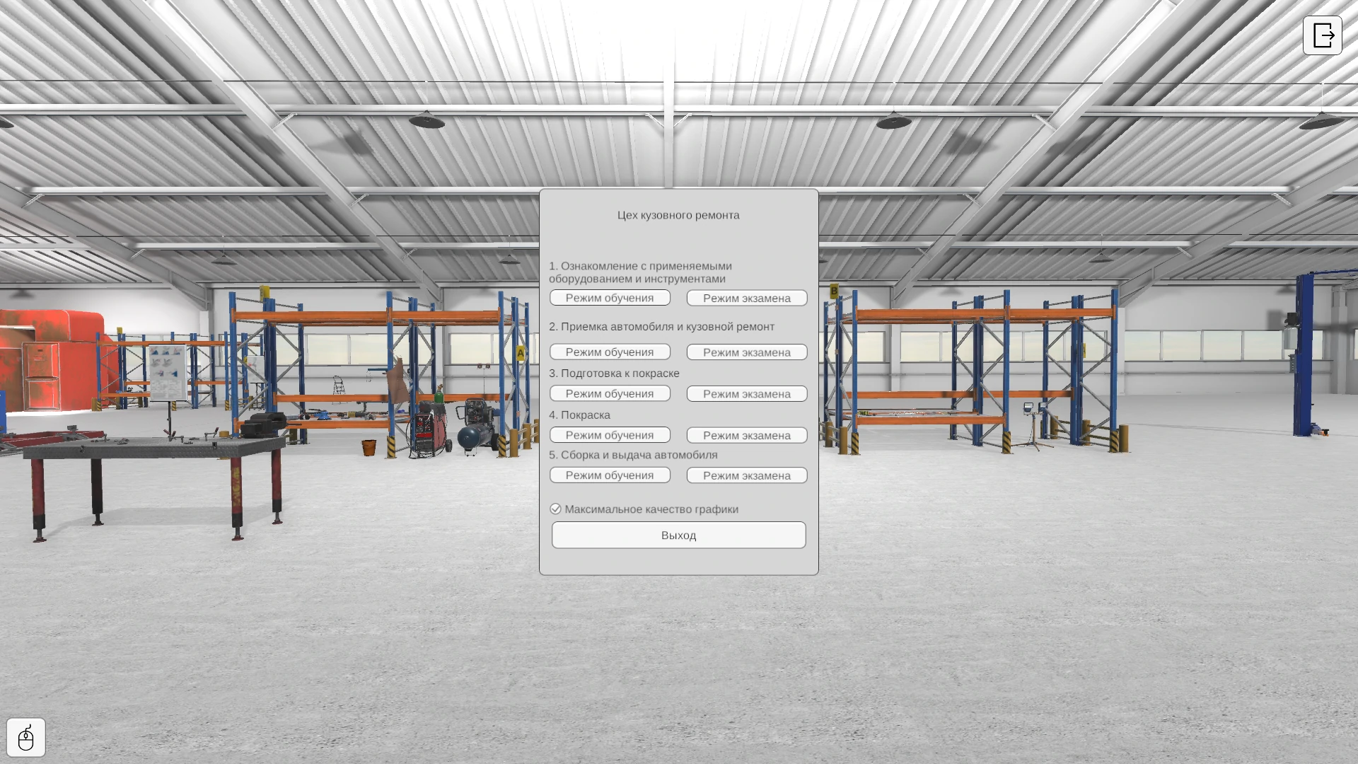 Имитационный тренажер “Цех кузовного ремонта” – средство профессиональной подготовки, предназначенное для совершенствования у обучаемых профессиональных навыков и умений, необходимых им для управления материальным объектом.