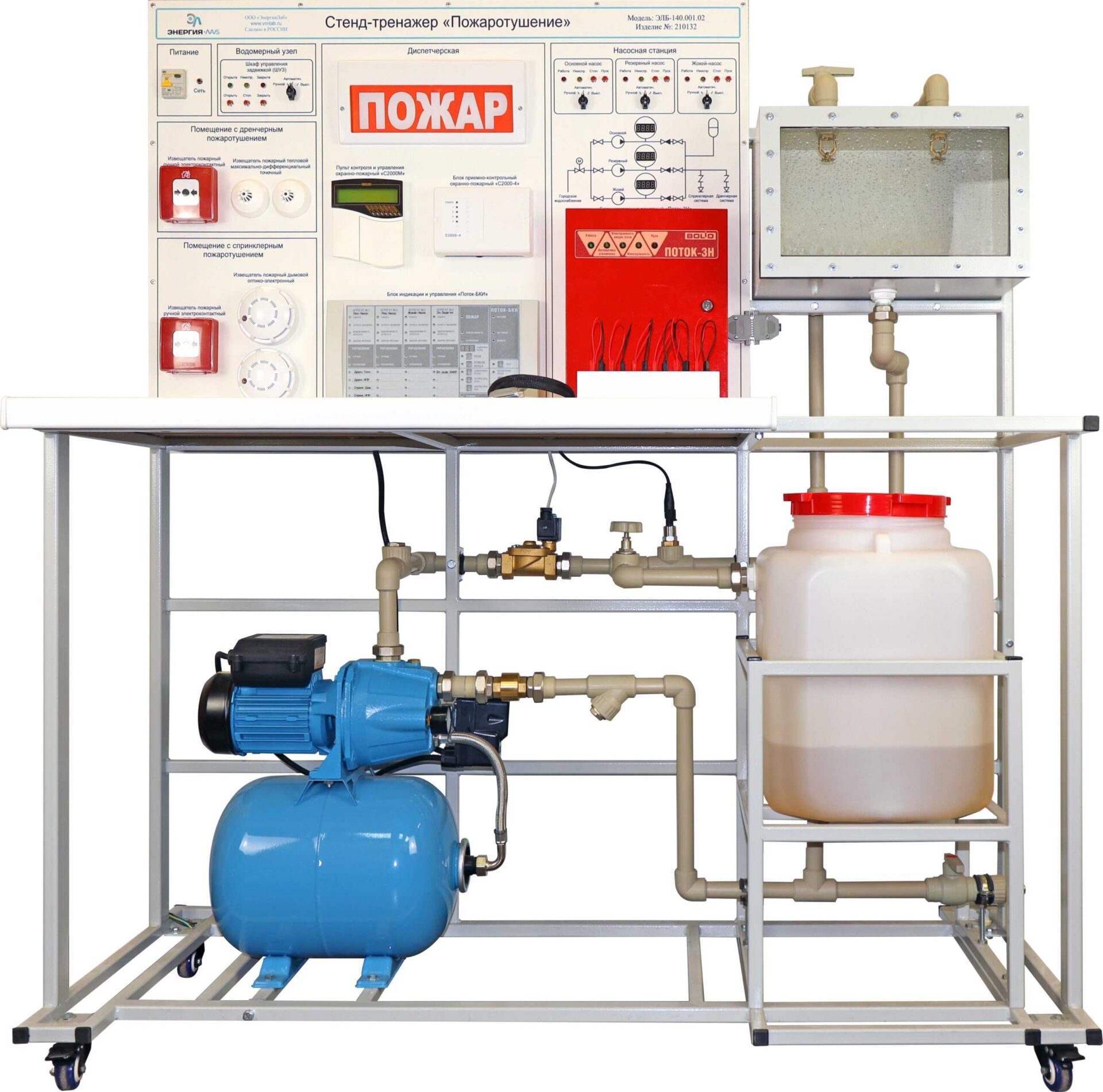 Учебно-тренировочный стенд «Пожаротушение» предназначен для моделирования процессов работы систем спринклерного и дренчерного пожаротушения.