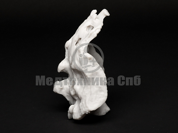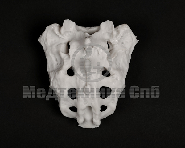 Анатомический макет представляет собой точную копию крестца человека, который образует верхнюю заднюю часть полости таза. Учебная модель изготовлена путем сканирования анатомического образца и произведена методом фотополимерной 3D-печати.
