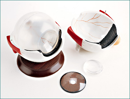 Полноразмерная модель с увеличением в шесть раз, с пятью съемными частями, включая верхнее полушарие, радужную оболочку/роговицу, люцитовую линзу, увеличивающую и переворачивающую изображения, прозрачное стекловидное тело и сетчатку. Модель глазного яблока легко разбирается и собирается, что способствует эффективному обучению студентов на практике. Прилагается учебное руководство на 2 страницах, где описаны 19 основных частей.