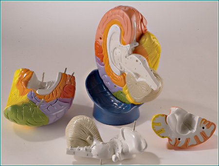 Увеличенные модели головного мозга превосходят обычный размер головного мозга в два раза, чтобы облегчить изучение мелких деталей. Тем не менее, несмотря на свой размер, модели головного мозга безопасны для передачи от студента студенту, т. к. они выполнены из прочного винила, и их части скреплены штифтами: они не будут отсоединяться сами, пока их не разберут.