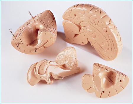 Пятьдесят основных элементов (идеально подходящих для вводного обучения) долей головного мозга, мозжечка, ствола головного мозга и желудочков пронумерованы для указания их в прилагаемых ключах на 3 страницах. Поставляется без подставки.