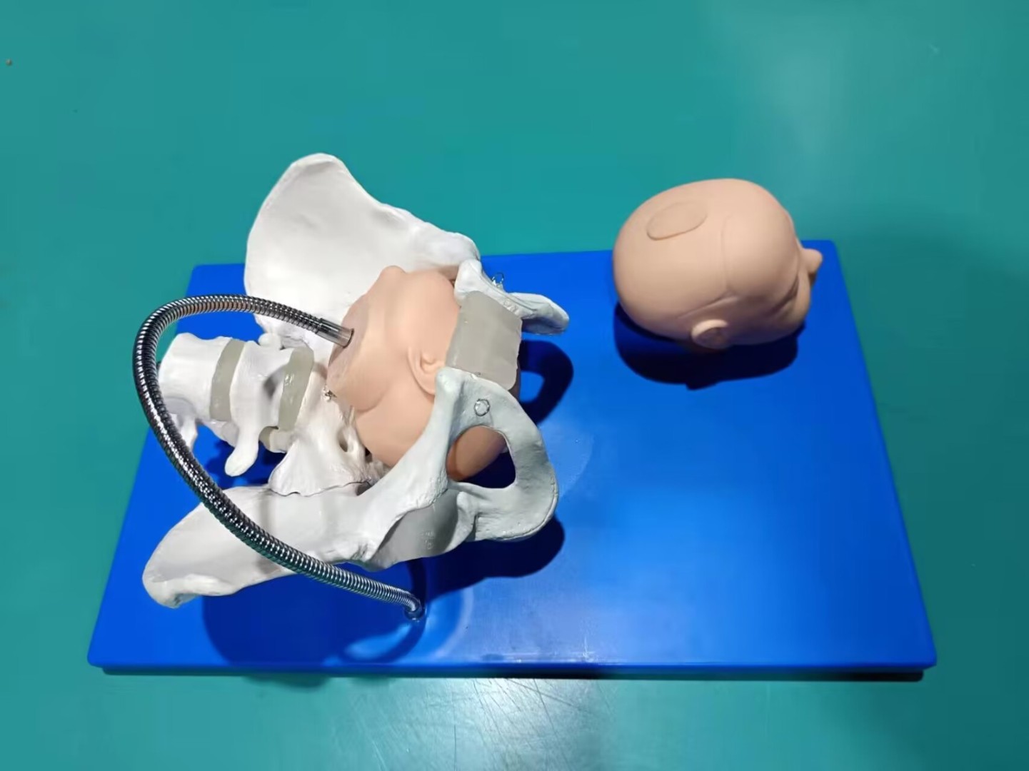 - Модель костей таза женщины и две модели головки плода для изучения этапов прохождения головки плода по родовым путям (костных структур)