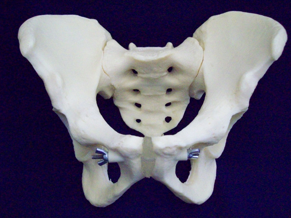 Полноразмерная разборная модель таза с 5-м поясничным позвонком. Модель выполнена из реалистичного материала, подобного кости, и состоит из 4 частей.