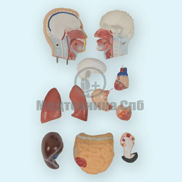 Съёмная модель головы. Разделена на две части, демонстрирует внутреннее строение головного мозга.