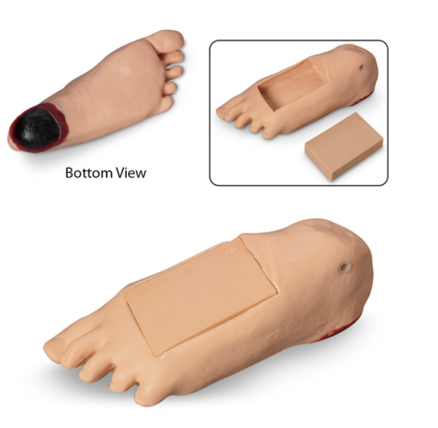 Дополнительная реалистичность при освоении навыков оценки состояния пациента, включая осмотр отечной стопы. Имитация отека осуществляется путем надавливания на поверхность кожи. Для демонстрации отеков стопы 1–4 степени, а также отека, при котором после надавливания не остается следа, так называемого плотного отека, используются реалистичные тканевые подушечки. При надавливании на кожу может остаться след, который исчезает не сразу после прекращения давления, или под действием давления след может вовсе не образовываться, в зависимости от того, какая используется тканевая подушечка. Также на модели в области пятки представлено глубокое поражение тканей. Комплект включает стопу, которую можно подсоединить к любому манекену для ухода за пациентом GERi или KERi, пять сменных подушечек, имитирующих один плотный отек и четыре степени тяжести пастозности, и карточку с инструкцией.