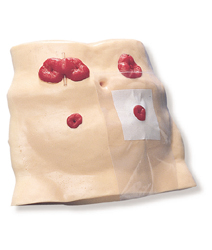 Изготовленная из прочного материала эта тренировочная модель с бежевым оттенком кожи содержит четыре стомы: временную колостому с двойной петлей, свежую трансверзостому, нисходящую колостому и илеостому. Илеостому можно использовать для установки мешка, и все четыре стомы можно оросить катетером, промыть и перевязать. Поставляется с лубрикантом, простыней и переносным чехлом размером 30,5 х 22,8 х 12,7 см.