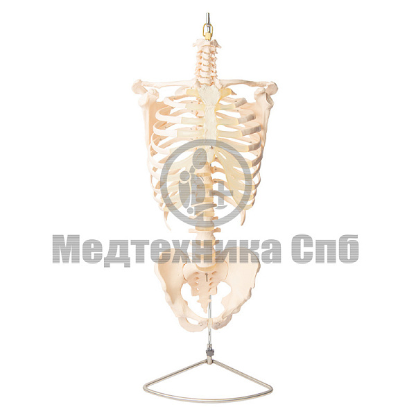 В составе модели: шейные, грудные, поясничные позвонки, крестец, копчик, ключицы, лопатки, ребра, грудина, реберные хрящи, кости таза с лобковым симфизом.