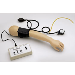 Модель руки присоединяется к плечевому разъему манекена CPARLENE. Руку можно поворачивать и отводить от тела для обеспечения более легкого доступа. Программное обеспечение модели руки позволяет имитировать пять фаз тонов Короткова, а для имитации аускультативного провала, который иногда присутствует между тонами фазы I и фазы II, можно использовать переключатель аускультативного провала. Отдельные переключатели регулируют громкость и работу дополнительной внешней аудиосистемы. Через аудиосистему можно транслировать звуки, слышимые при измерении артериального давления пациента, без использования стетоскопа и адаптеров. Отдельное устройство контроля частоты пульса позволяет задавать частоту в диапазоне от 50 до 100 ударов в минуту. Тренажер для обучения измерению артериального давления включает в себя манжету сфигмоманометра и манометр. Лампа-индикатор низкого уровня заряда аккумулятора. В комплект входят четыре батарейки «АА». Можно приобрести дополнительный динамик.