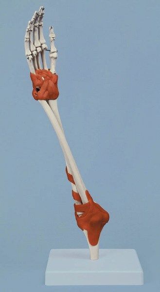 Суставы руки и локтя, гибкие, можно пересечь лучевую кость и локтевую кость, потому что кости скручены в связках. На стенде.