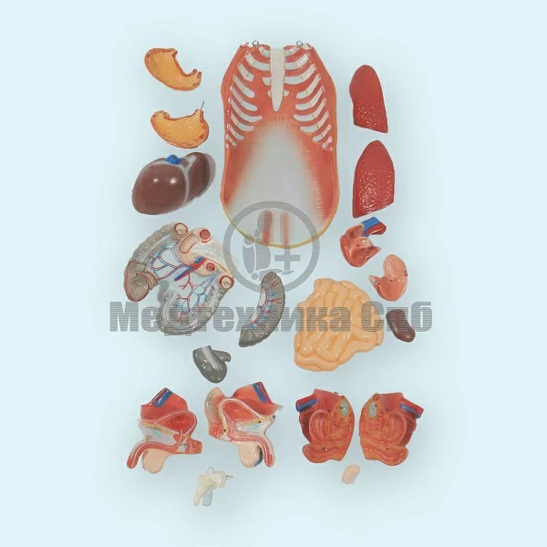 Разборная анатомическая модель торса двуполая, 45 см, состоит из 23 частей на удобной подставке — идеальный инструмент для изучения строения тела. Купите наглядное пособие для школ, вузов и медицинских учреждений прямо сейчас.