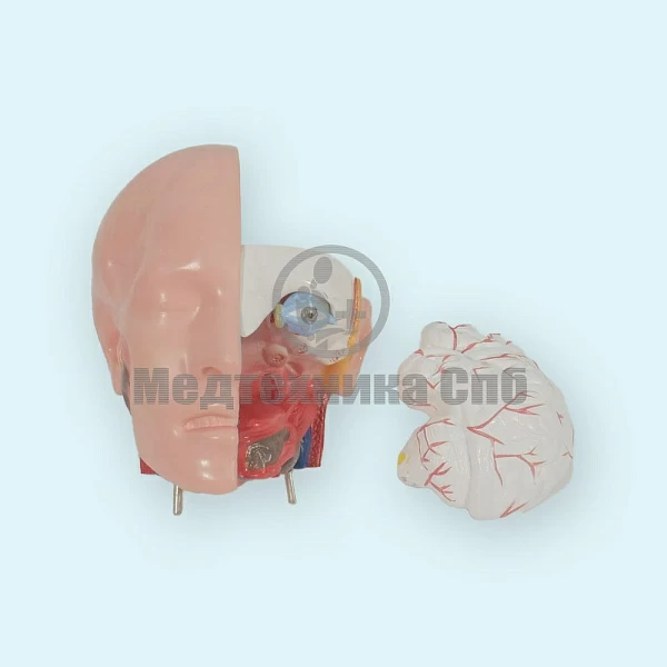 Модель головы с разрезом, демонстрирующим головной мозг.