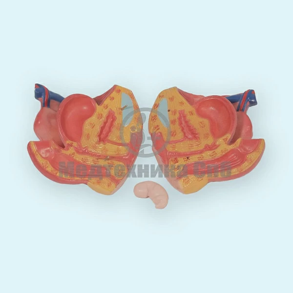 Модель женских гениталий с имитацией трехмесячного эмбриона в правильном внутриутробном положении.