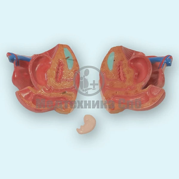 Модель женских гениталий с имитацией трехмесячного эмбриона в правильном внутриутробном положении.