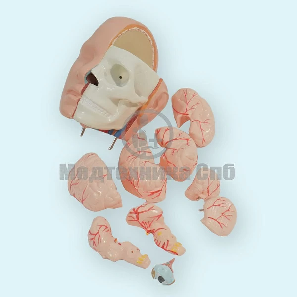 Модель головы с разрезом, демонстрирующим головной мозг.