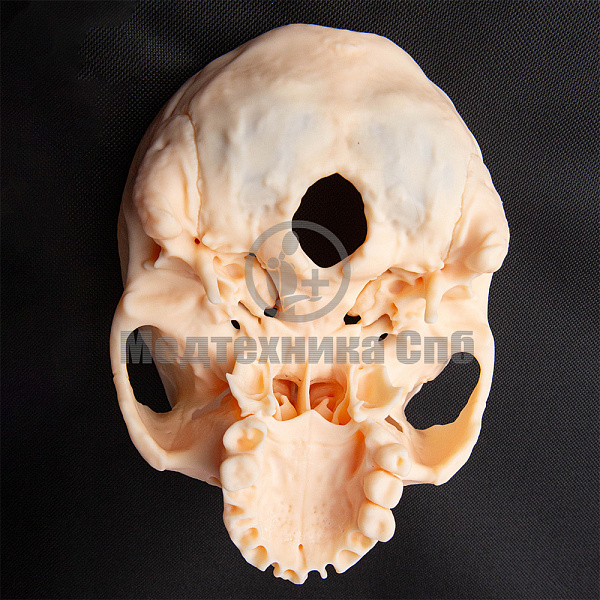 Высокоточный анатомический макет основания черепа, изготовлен путем сканирования анатомического образца черепа человека и произведен методом фотополимерной 3D-печати.