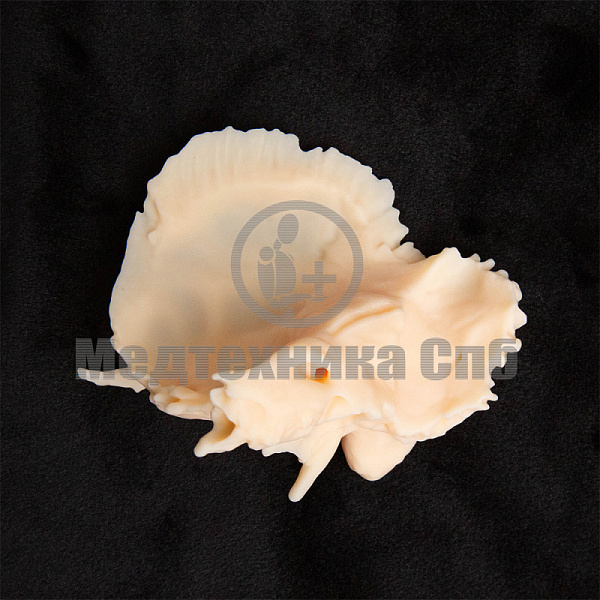 Анатомический макет височной кости изготовлен путем сканирования с натуры анатомического образца и произведен методом фотополимерной 3D-печати, воспроизводит все структуры и костные ориентиры височной кости черепа.