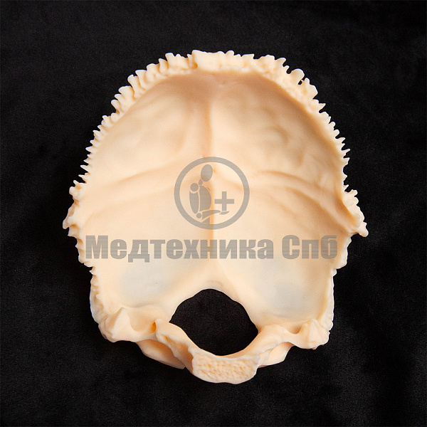 Анатомическая модель затылочной кости воспроизводит кость трапециевидной формы, которая расположена у основания черепа. Макет изготовлен путем сканирования с натуры затылочной кости и произведен методом фотополимерной 3D-печати.