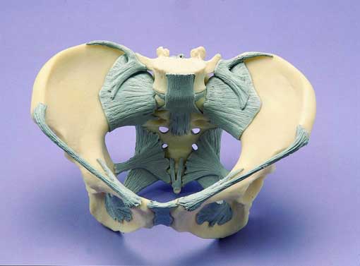 Полноразмерная модель таза с 5-м поясничным позвонком и связками. Модель неразборная. Модель изготовлена из реалистичного материала, подобного кости.