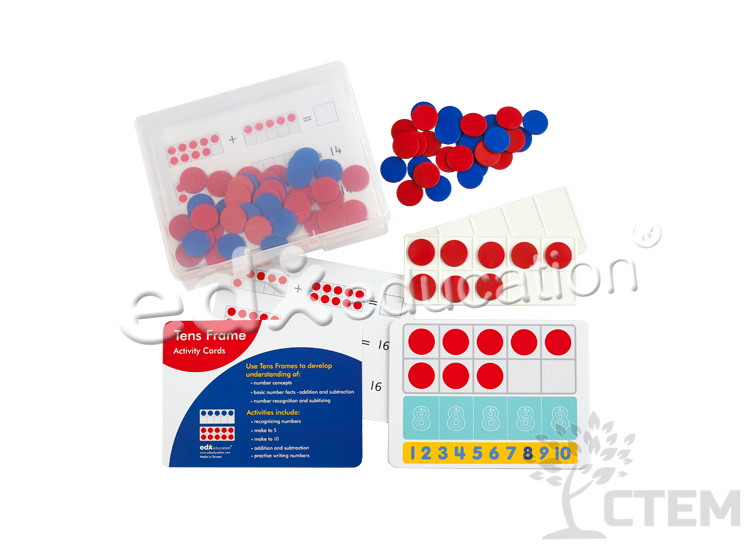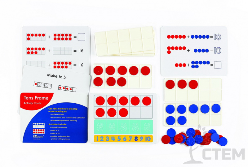 Счетное поле "10" 8шт., 80 2-х цветных счетных фишек, 16 карточек с заданиями
