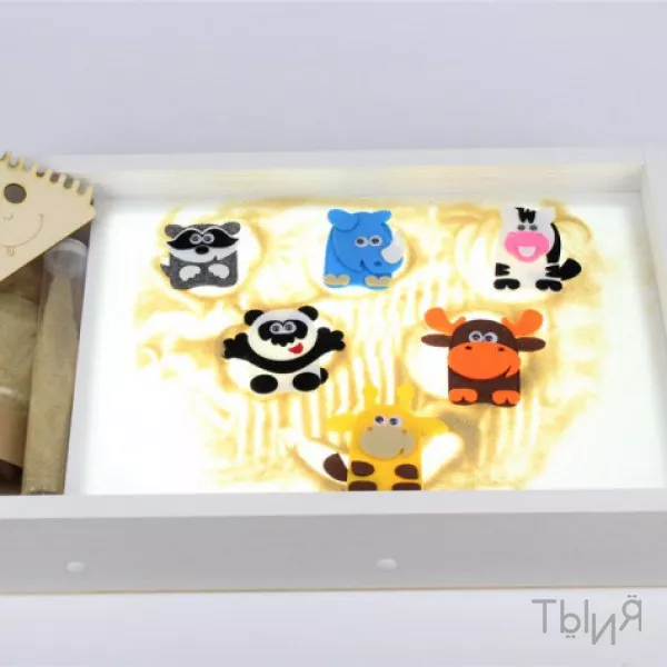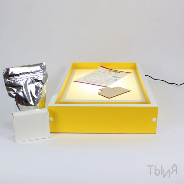 В комплекте: световой планшет, песок, подсветка, яркий корпус, отсек для инструментов и песка.