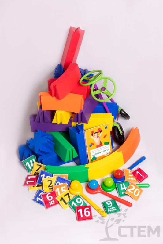 С его помощью вы сможете реализовать широкий спектр задач по физическому развитию детей. Уникальность пособий, в его составе, позволяет интегрировать в активность познавательное, социально – коммуникативное и математическое развитие.