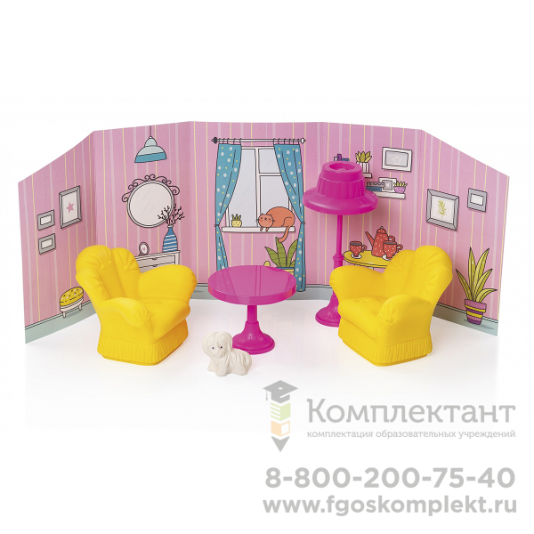 - Особенность: Комната отдыха с интерьером - замечательная игрушка станет отличным подарком для любого малыша. Она не сломается и не потеряет форму с течением времени. В процессе игры ребенок будет выдумывать различные сюжеты, развивая свое воображение. Изделие выполнено из высококачественных полимерных материалов.