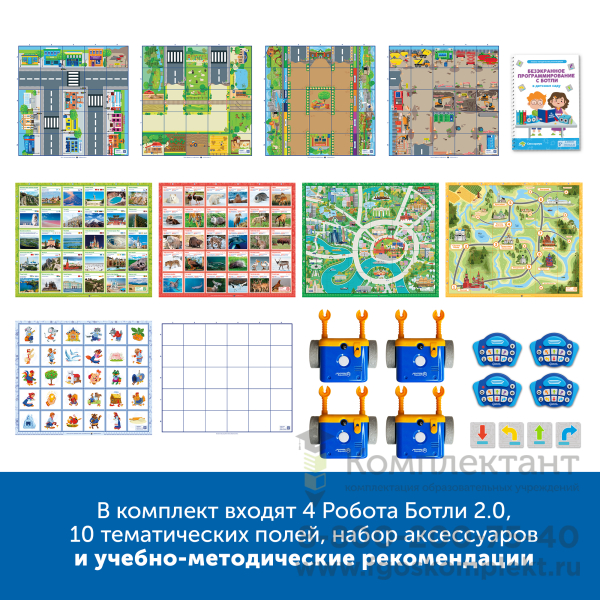 Образовательный комплект "Безэкранное программирование с Роботом Ботли" создан для воспитателей ДОУ и педагогов дополнительного образования для работы с детьми 5-8 лет. Подходит для индивидуальной, парной и групповой работы.