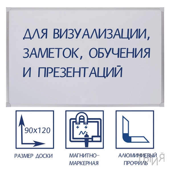 - размеры магнитно-маркерной доски: 90х120. В алюминиевой рамке, с полочкой. Алюминиевый профиль толщина 15 мм и шириной (видимой части профиля) 16 мм;