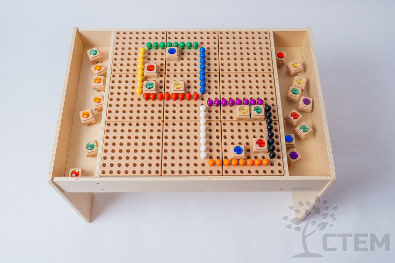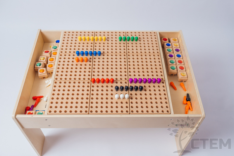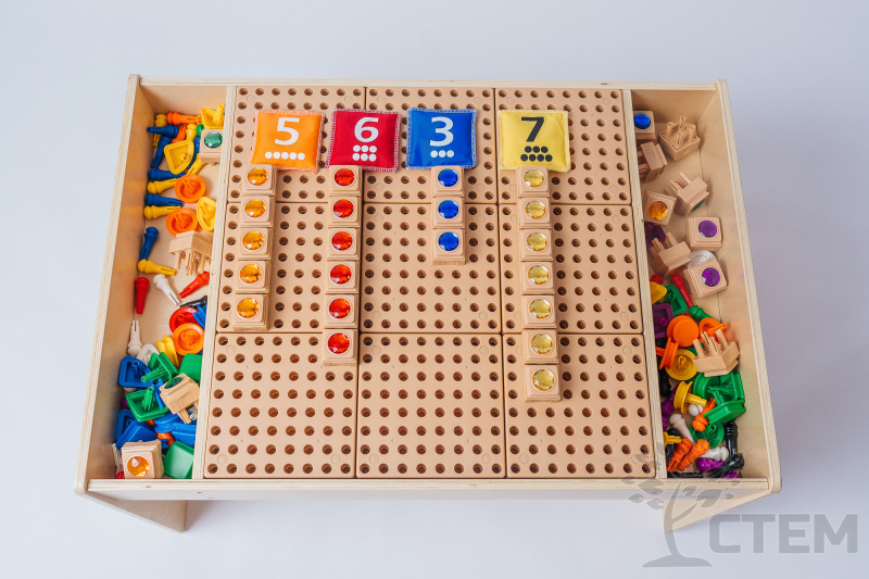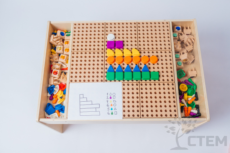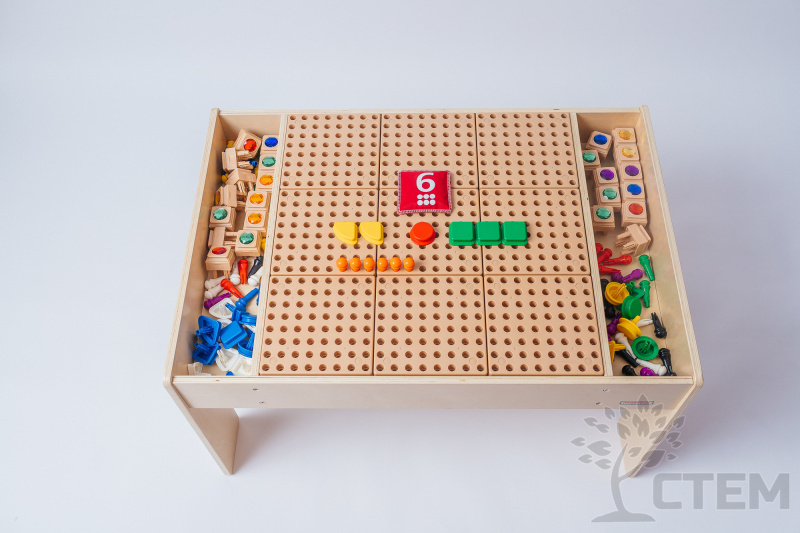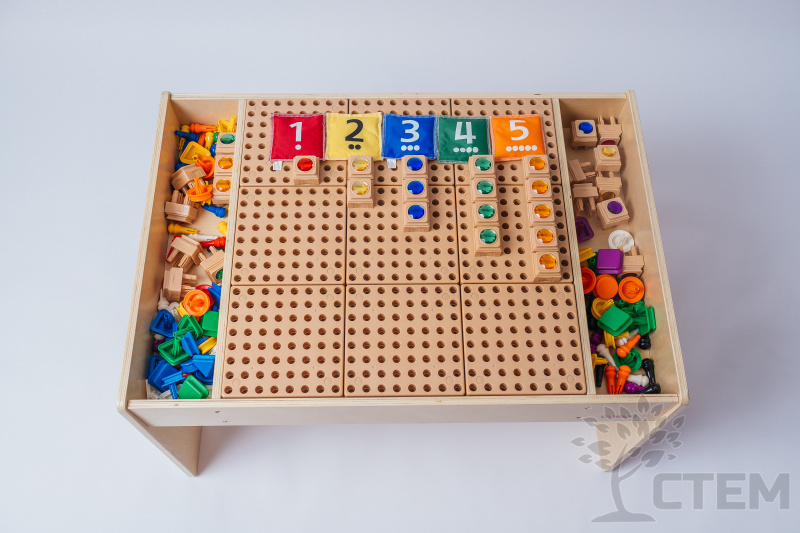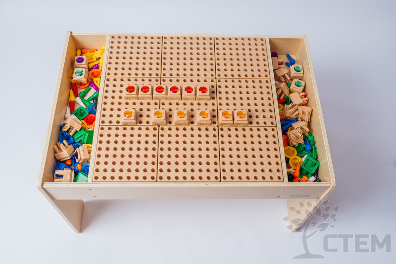С помощью данных СТЕМ – столов можно заниматься изучением основ математики, решать творческие задачи, а также, в процессе работы, развивать сенсорные навыки и мелкую моторику пальчиков.
