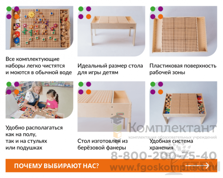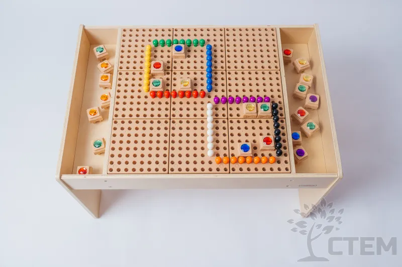 С помощью данных СТЕМ – столов можно заниматься изучением основ математики, решать творческие задачи, а также, в процессе работы, развивать сенсорные навыки и мелкую моторику пальчиков.