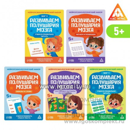 Перед вами набор, в котором собран комплекс заданий и упражнений, направленный на развитие обоих полушарий мозга. Занимаясь, ребёнок разовьёт речь и навыки чтения. В каждой игре его ждёт 20 карточек с заданиями и подробное методическое пособие. Как играть? Все задания выполняются под наблюдением взрослого. Рекомендуем начать занятия с просто материала — «Составляем рассказы по картинкам». После можно постепенно переходить к обучению чтению. Благодаря набору ребёнок научится: составлять рассказы по картинкам; читать текст, пересказывать и отвечать на вопросы; читать текст и выбирать картинку, которая ему соответствует; читать 2 текста одновременно; вставлять пропущенные окончания и слоги в словах; выполнять прочие задания.