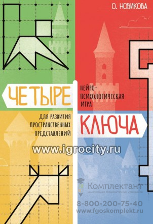 В дальней башне волшебного замка спрятаны сокровища. Башня закрыта на 4 замка, и чтобы открыть их, нужно получить 4 ключа. А для этого надо выполнить 4 непростых задания… Только внимательные и настойчивые герои смогут достичь цели. Кто первым доберется до сокровищ? Как играть Задача игроков — передвигать по полю свою фишку так, чтобы раньше других дойти до противоположной по диагонали клетки, отмеченной меткой-«башенкой», собрав при этом четыре разных по цвету «ключа». Четыре «ключа» — это правильно выполненные задания четырех типов: копирование, воспроизведение образца по памяти, преобразование изображения и выполнение задания по словесной инструкции. Чем полезна игра Игровой набор разработан нейропсихологами для поэтапного формирования пространственных представлений, внимания, памяти, умения действовать по инструкции. Карточки может использовать как специалист (нейропсихолог, психолог, логопед и т.д.) в коррекционных и диагностических целях, так и родитель или любой взрослый, задача которого — с пользой и интересом провести время вместе с ребенком или с небольшой группой детей. Что в комплекте карточки, из которых составляется поле; карточки с заданиями; мелкая и крупная клетка для ксерокопирования (также можно распечатать pdf-файл с клетками на компьютере, либо играть в тетради в клетку) памятка для игроков, отражающая структуру заданий. Внимание! Кубик и фишки в комплект не входят. Вы можете приобрести их отдельно или использовать фишки и кубик из других настольних игр.