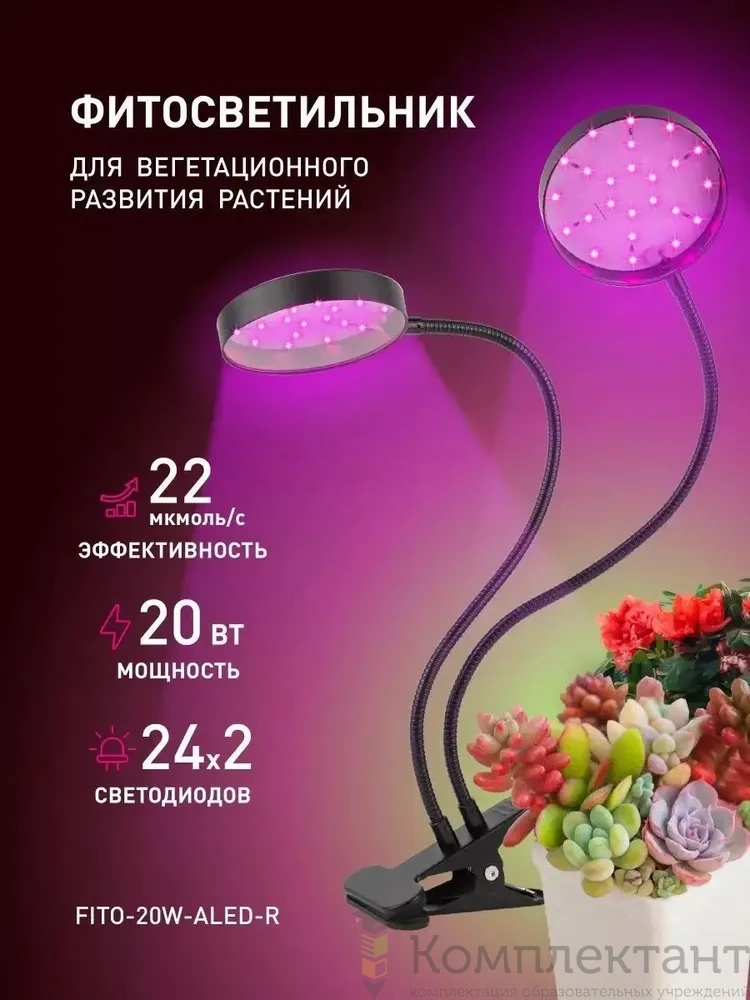 Фитосветильник ЭРА FITO-20W-АLED-R в черном корпусе предназначен для выращивания рассады и зелени, а также для досвечивания комнатных растений. Этот светильник красно-синего спектра идеально подходит для создания своего "мини-огорода" на подоконнике. Максимально простой дизайн позволит модели легко вписаться в интерьер балкона, кухни или комнаты. Главное преимущество этой фитолампы крепление на прищепке, благодаря которому не нужно тратить время на установку, и равномерно распределенный свет. Свечение совершенно безопасно для человека и животных. Алюминиевый корпус светильника обеспечивает хорошую теплоотдачу светодиодов, надежный блок питания позволит работать светильнику много лет. Гибкий провод поможет поместить лампы именно так, как Вам необходимо. За счет прищепки установка конструкции может быть как горизонтальной, так и вертикальной. Создайте для любимых растений комфортные условия, а себя обеспечьте большим урожаем вместе с фито лампой ЭРА!