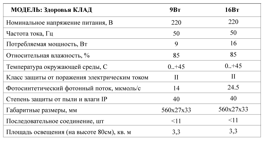 Фитолампа «Здоровья КЛАД 9 Вт»