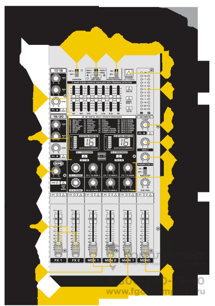 - 8 микрофонных предусилителей XENYX с отключаемым фантомным питанием +48 В