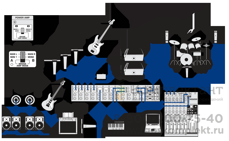 Тип устройства : микшерный пульт со встроенным усилителем мощности.